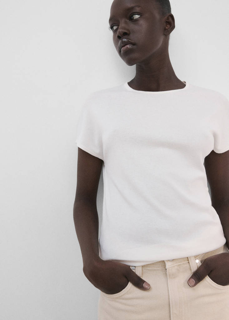 New NowCamiseta mezcla algodón manga cortaPrecio actual [US$ 26,99 ]US$ 26,99Selecciona un colorBlanco rotoLa modelo lleva la talla S y mide 176cm.Selecciona tu tallaXXSXSSMLXLXXLGuía de tallasAñadir a FavoritosVer lookEnvío gratis a tiendaVer disponibilidad en tiendaDescripciónTejido mezcla de modal y algodón. Tejido fino. Diseño recto. Cuello redondo. Manga corta. Bajo recto.Ver detallesCualidades del artículoAlgodón regenerativoAl menos 20%Esta fibra natural se cultiva adoptando prácticas que regeneran la salud del suelo y el ecosistema de la finca.Compartir