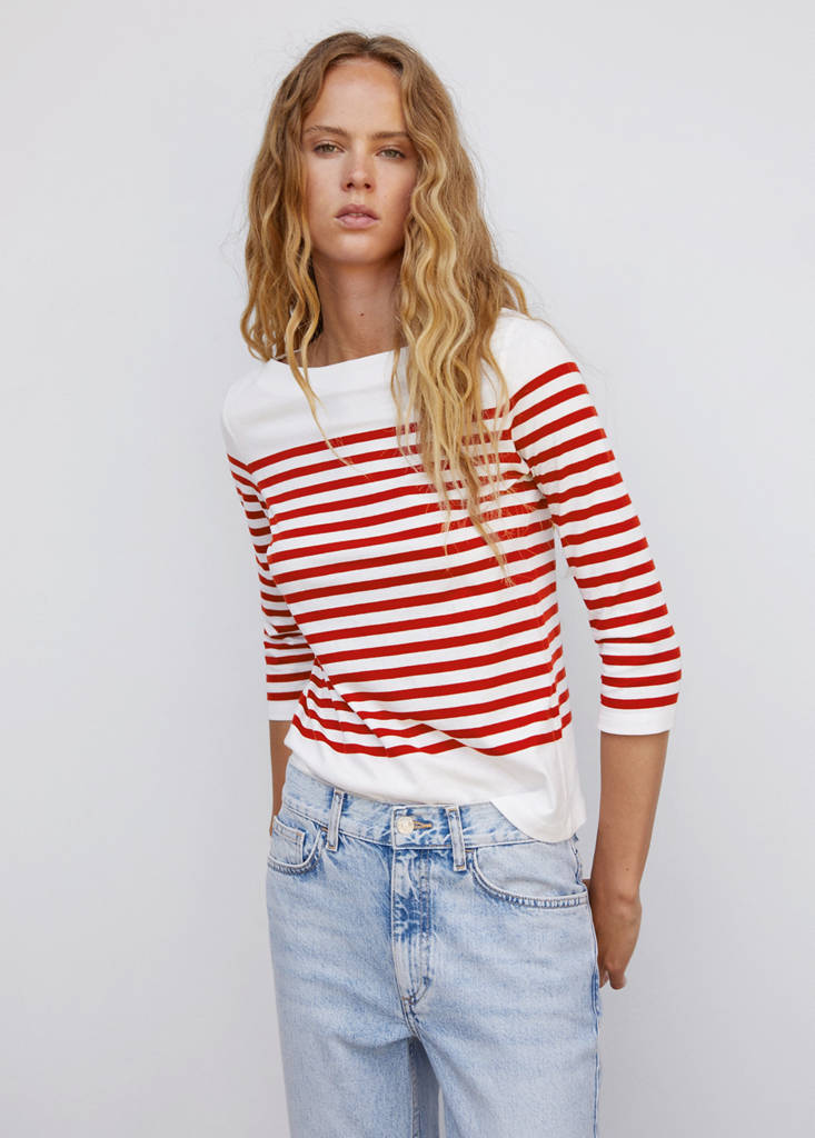 Camiseta rayas cuello barcoPrecio actual [US$ 25,99 ]US$ 25,99Selecciona un colorRojoLa modelo lleva la talla S y mide 178cm.Selecciona tu tallaXXSXSSMLXLXXLMedidasAñadir a FavoritosVer lookEnvío gratis a tiendaDiseño recto. Cuello barco. Manga larga. Diseño de rayas. Tejido 100% algodónDetalles, composición y cuidadosDisponibilidad en tienda