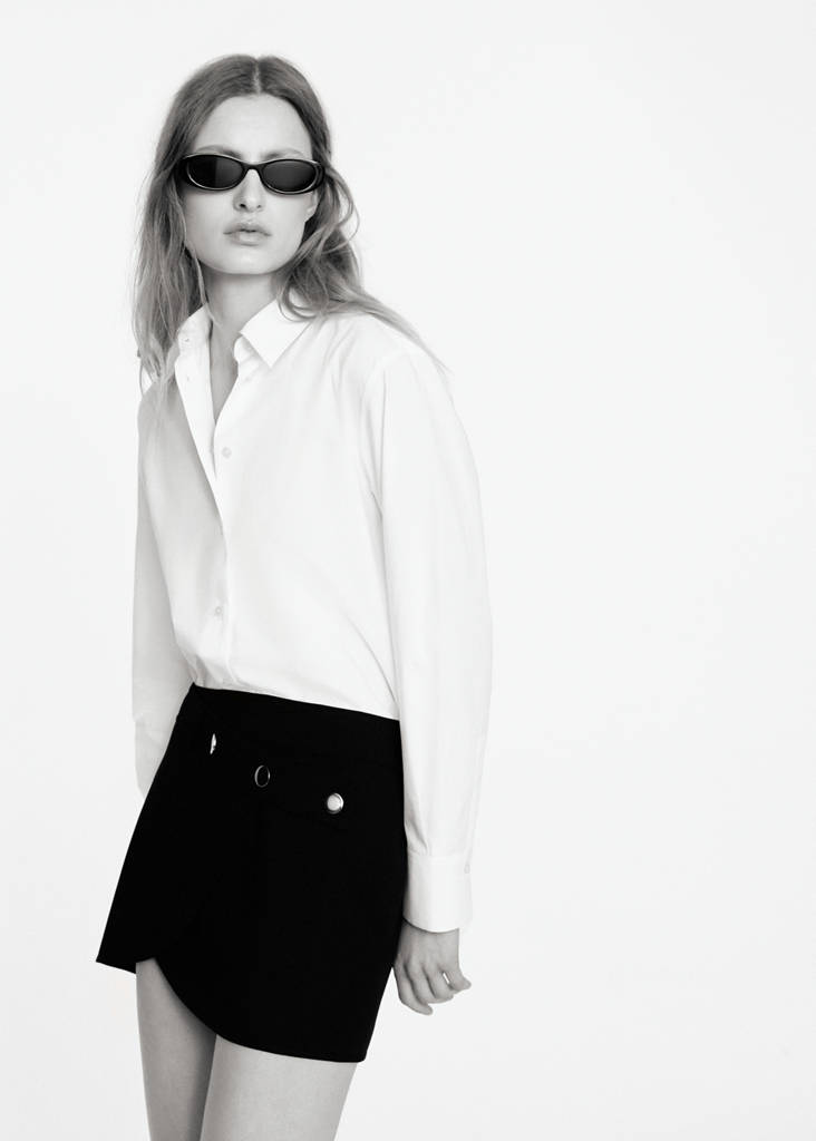 Tejido mezcla de lana. Diseño corto. Tiro medio. Detalle cinturón en la cintura. Botones efecto joya. Trabillas. Cierre delantero con botones. Exclusivo Online. Colección Selection.