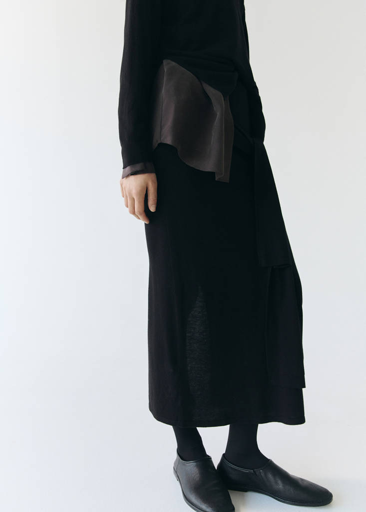 Tejido de punto fino. Diseño recto. Diseño largo. Tiro medio. Detalle nudo. Cintura ajustable con goma. Sin cierre. Total look.