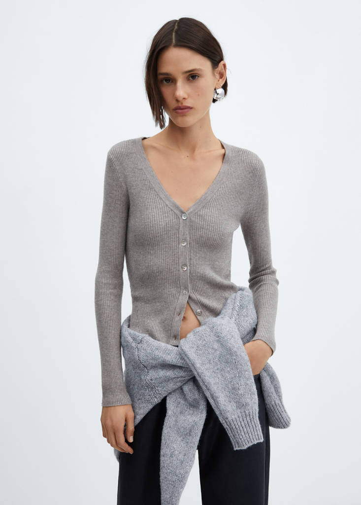 Cárdigan canalé cuello picoPrecio actual [US$ 39,99 ]US$ 39,99Selecciona un colorGrisLa modelo lleva la talla S y mide 177cm.Selecciona tu tallaXXSXSSMLXLXXLMedidasAñadir a FavoritosVer lookEnvío gratis a tiendaTejido de punto fino. Tejido de canalé. Cuello pico. Manga larga. Looks de oficina. Colección Básicos. Diseño entallado. Cierre delantero con botonesDetalles, composición y cuidadosDisponibilidad en tienda