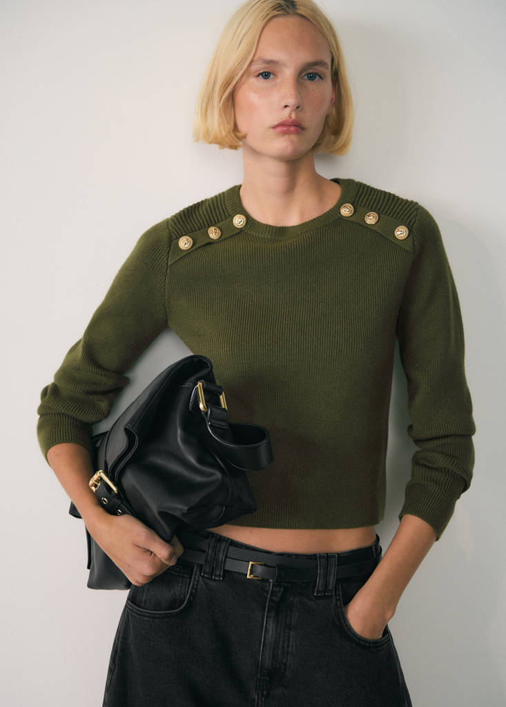 Jersey botones joyaPrecio actual [US$ 69,99 ]US$ 69,99Selecciona un colorKhakiSelecciona tu tallaXXSXSSMLXLXXLMedidasAñadir a FavoritosVer lookEnvío gratis a tiendaTejido de punto grueso. Diseño medio. Slim fit. Botones efecto joya. Sin cierre. Manga larga. Disponible Plus. Diseño entallado. Cuello redondoDetalles, composición y cuidadosDisponibilidad en tienda