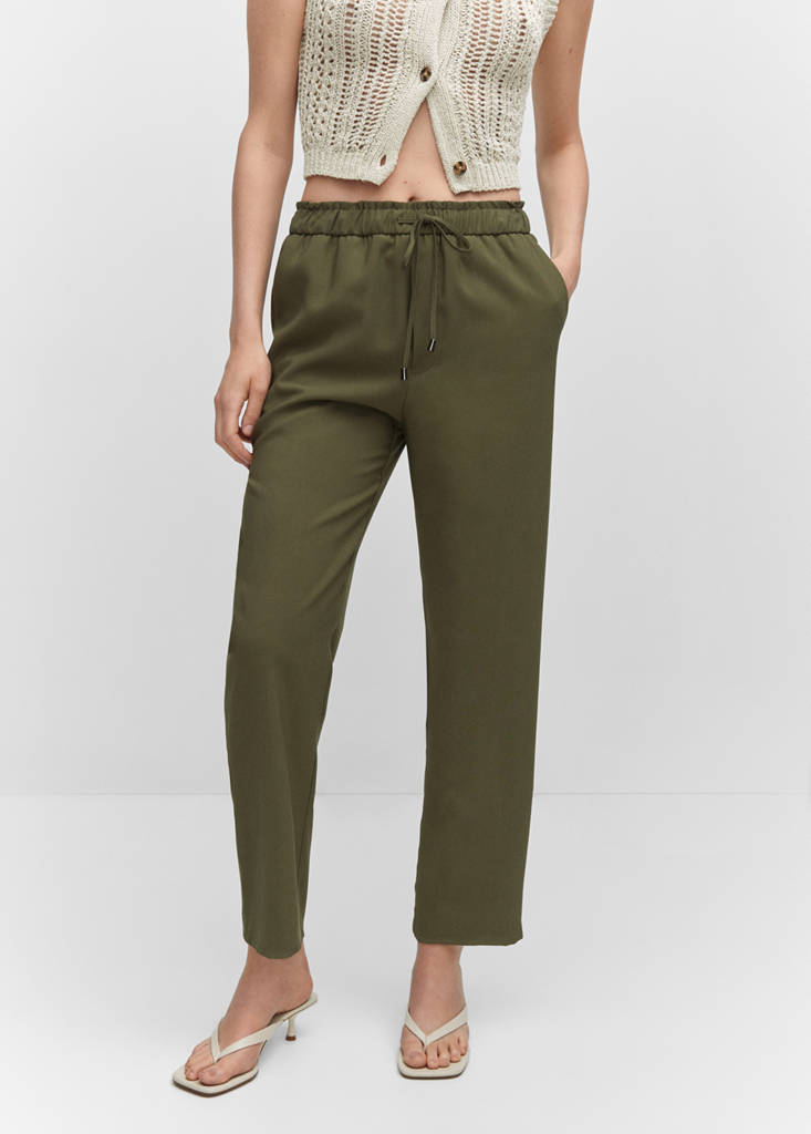 Tejido fluido. Diseño largo. Diseño recto. Estilo jogger. Cintura con goma elástica. Lazo ajustable en la cintura. Dos bolsillos laterales. Disponible Plus. Goma elástica. Nudo en la cintura