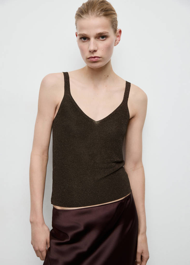Tejido de lurex. Tejido de punto fino. Escote de pico. Diseño recto. Sin mangas. Tirantes finos. Sin cierre. Disponible Plus. Esta prenda pertenece a nuestra colección de fiesta y evento, diseñada para elevar tus looks en ocasiones especiales.