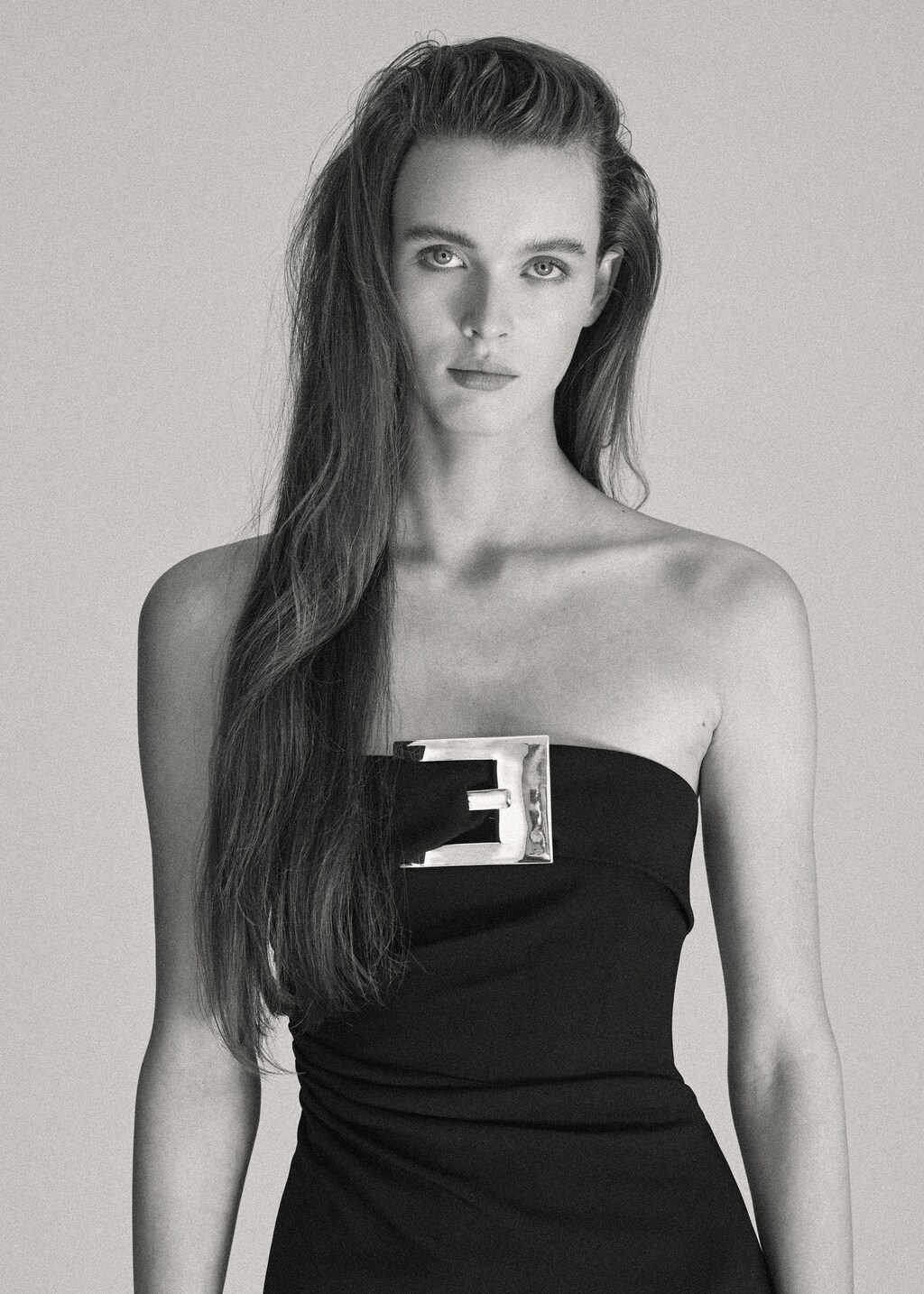 Vestido palabra de honor hebilla metálica