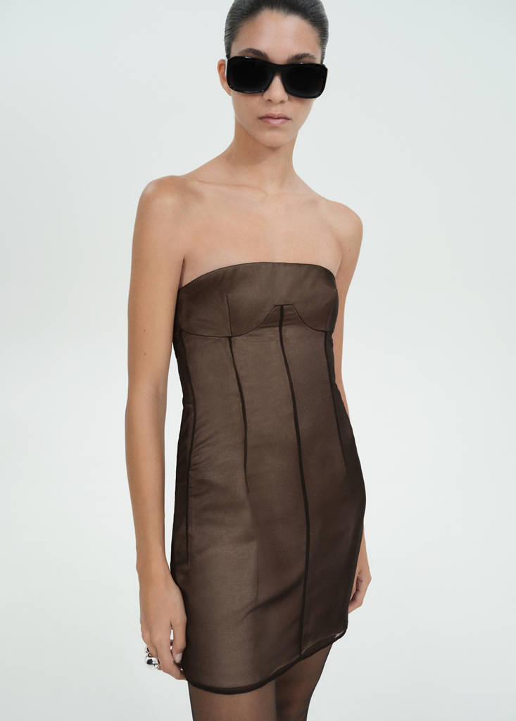 Diseño corto. Sin mangas. Palabra de honor. Forro interior. Colección fiesta, ceremonia y comunión. Colección Selection. Estilo corsetero. Diseño entallado. Cierre de cremallera en la parte posterior