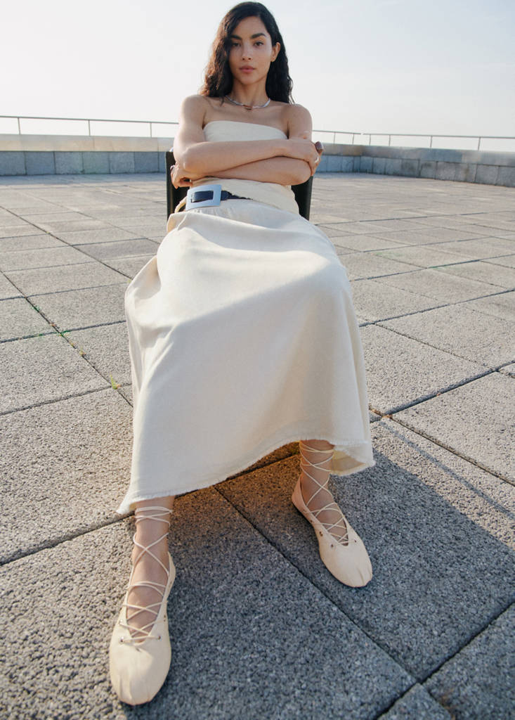 Piel ovino. Flat. Diseño de tiras cruzadas. Punta redonda. Cierre de lazo en el tobillo. Exclusivo Online.