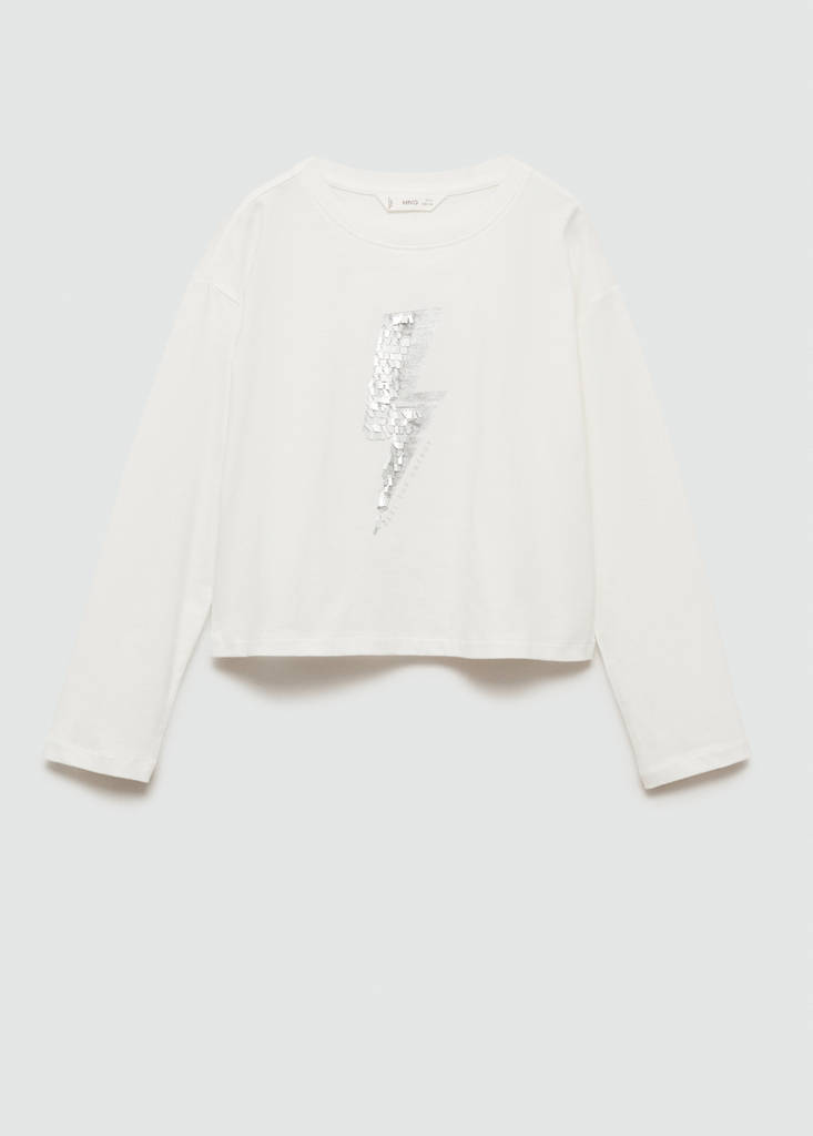 Diseño recto. Adorno de lentejuelas. Cuello redondo. Manga larga. 100% Algodón
