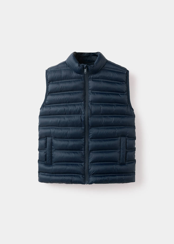 Cuello solapa Alto/Envolvente. Largo Standard. Silueta Recto. Estructura plana Ligero. Ubicacion cierre Cierre Delantero. Tejido acolchado. Tejido impermeable. Diseño recto. Cuello recto. Sin mangas. Cierre de cremallera. Dos bolsillos laterales.