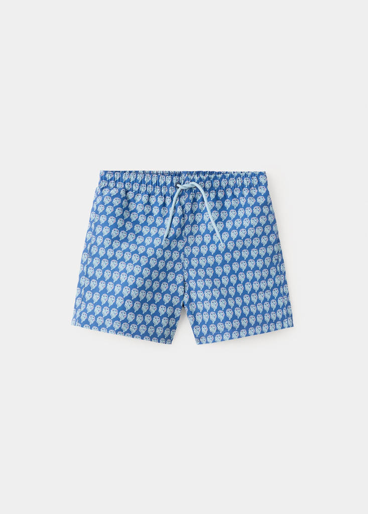 Tejido elástico. Diseño recto. Estampado floral. Cintura elástica con cordón ajustable. Cordones en contraste. Colección baño.