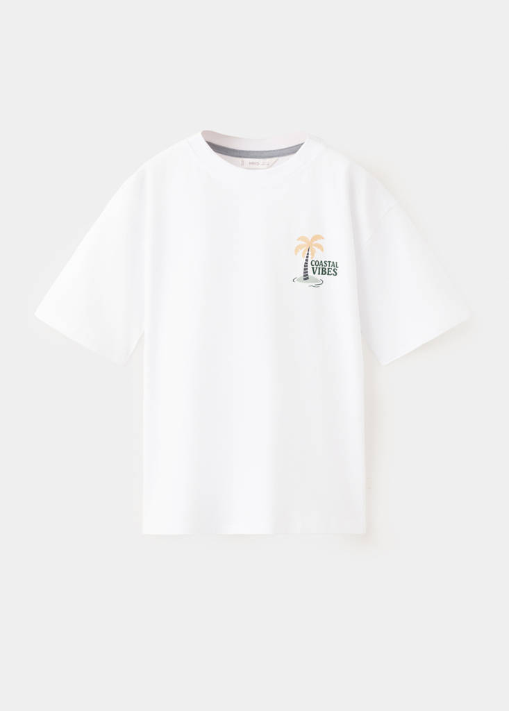 Tejido 100% algodón. Diseño recto. Cuello redondo. Manga corta. Dibujo estampado en el pecho.
