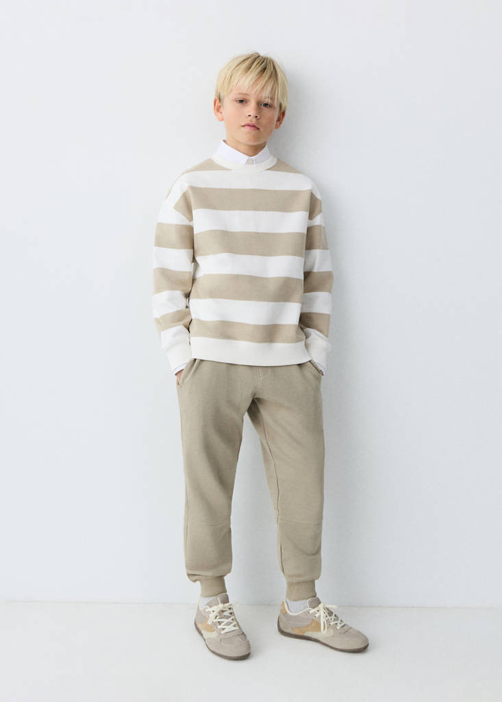 Tejido 100% algodón. Diseño largo. Diseño recto. Estilo jogger. Cintura elástica con cierre de lazo. Bolsillo de ribete en la parte posterior. Dos bolsillos laterales. Elástico en el bajo.