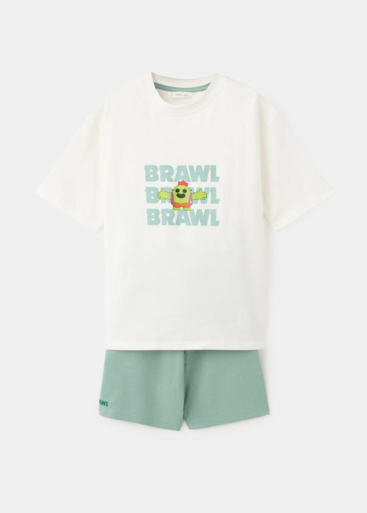 Pack de camiseta de manga corta y pantalón corto de pijama. Tejido 100% algodón. Diseño estampado. Pantalón corto. Brawl Stars. Licencias.