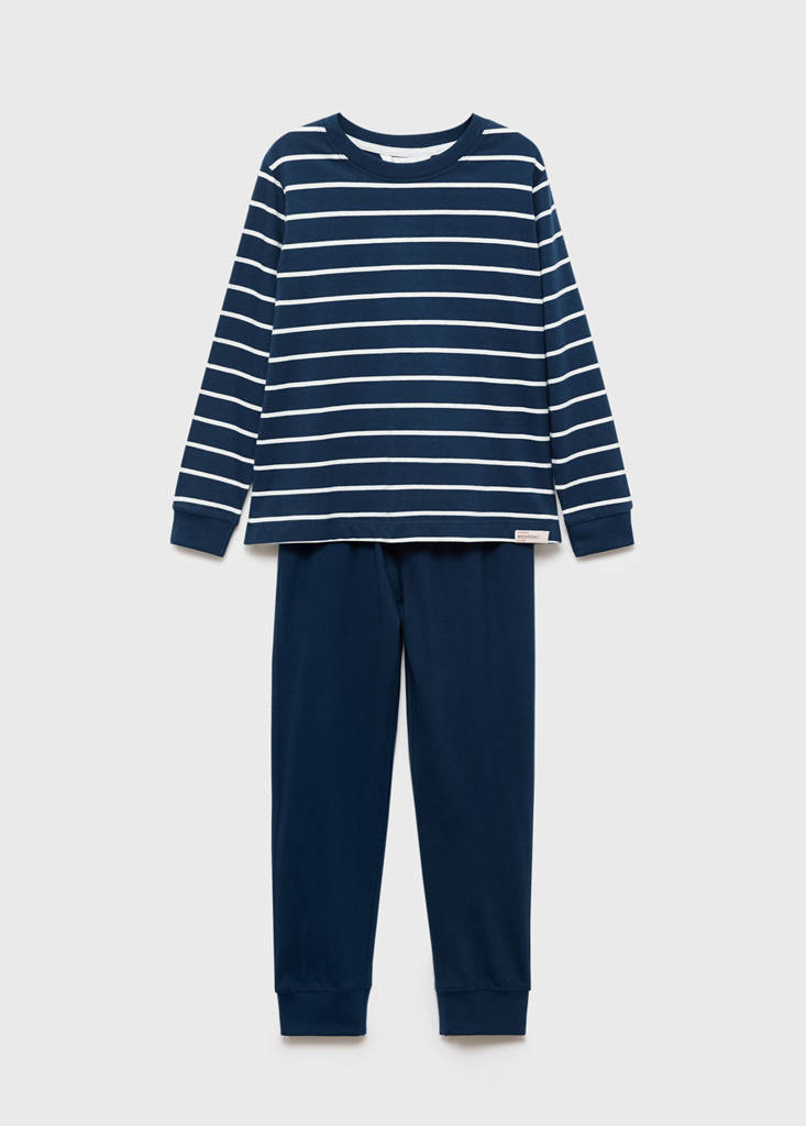 Tejido 100% algodón. Diseño largo. Diseño de rayas. Cuello redondo. Manga larga. Pantalón largo. Pantalón con cintura elástica y cordón ajustable.