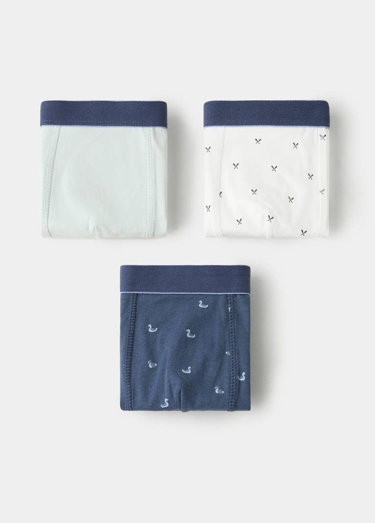 Pack de 3. Tejido de algodón. Tipo boxer. Cintura con goma elástica.