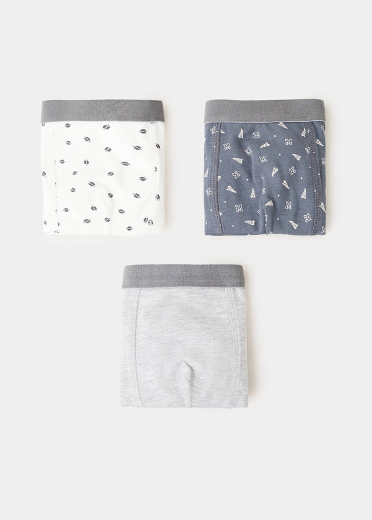 Pack de 3. Tejido de algodón. Tejido elástico. Tipo boxer. Diseño recto. Diseño combinado. Cintura elástica.