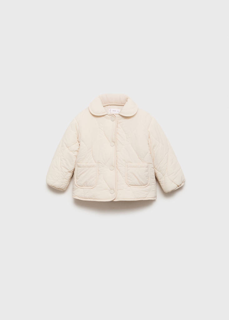 Tejido acolchado. Tejido efecto borreguito. Diseño recto. Cuello solapa Babydoll/Peter Pan. Manga larga. Cierre de botones. Dos bolsillos delanteros. Interior de borreguito.