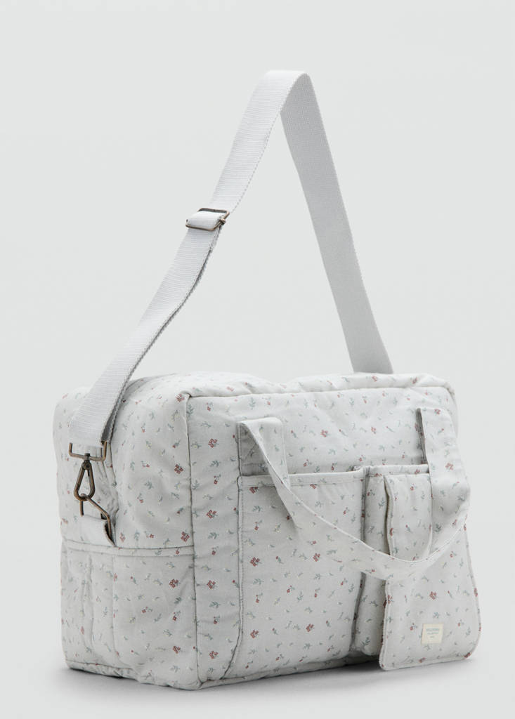 Tejido 100% algodón. Diseño cuadrado. Asa larga ajustable. Dispone de un bolsillo delantero. Forro interior. Cierre de cremallera. Welcome collection. Maternity Collection. Nueva talla: 0 - 1 meses.