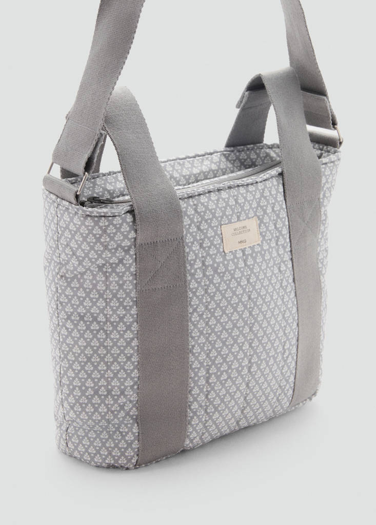 Forro interior. Bolsillos interiores. Diseño estampado. Dos asas cortas. Asa larga ajustable. Cierre de cremallera. Maternity Collection.
