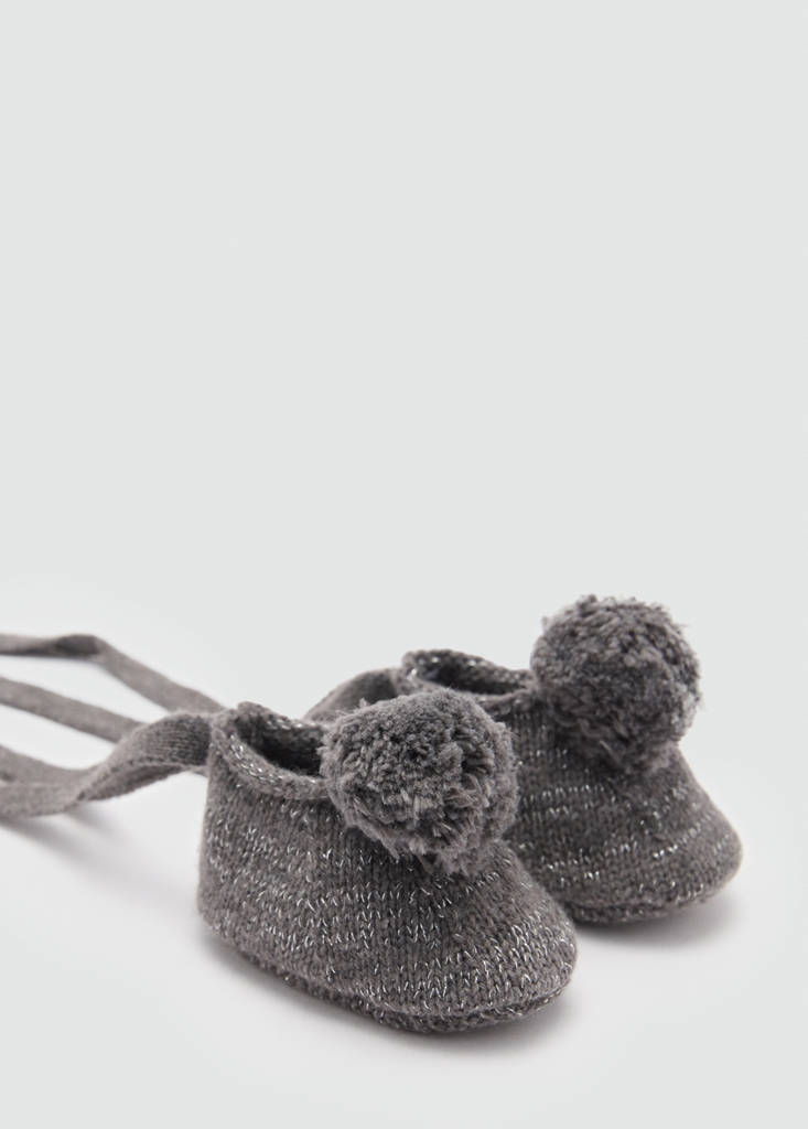 Tejido de punto. Punta redonda. Detalle de pompón. Cierre de tiras
