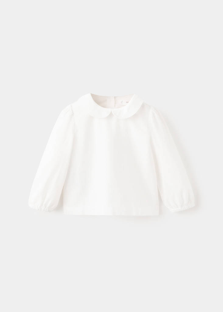 Tejido 100% algodón. Diseño red. Diseño de cuadros. Cuello bebé. Manga larga con puños elásticos. Cierre de botones en la parte posterior.