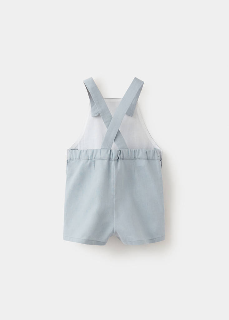 Tejido mezcla de lino y algodón. Diseño recto. Diseño corto. Cuello recto. Tirantes anchos. Cierre de botones. Colección fiesta, ceremonia y comunión.