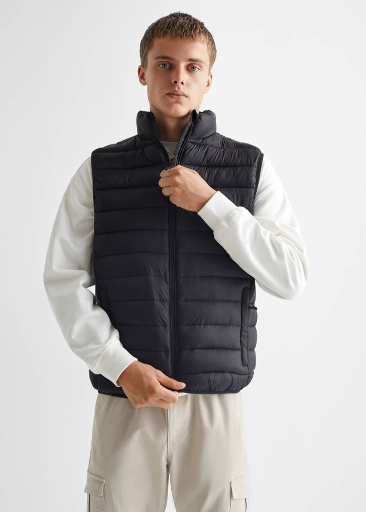 Diseño acolchado. Cierre delantero. Diseño recto. Diseño estándar. Dos bolsillos de solapa laterales. Cierre de cremallera. Dos bolsillos de solapa. Tejido ligero. Sin mangas. Cuello redondo.