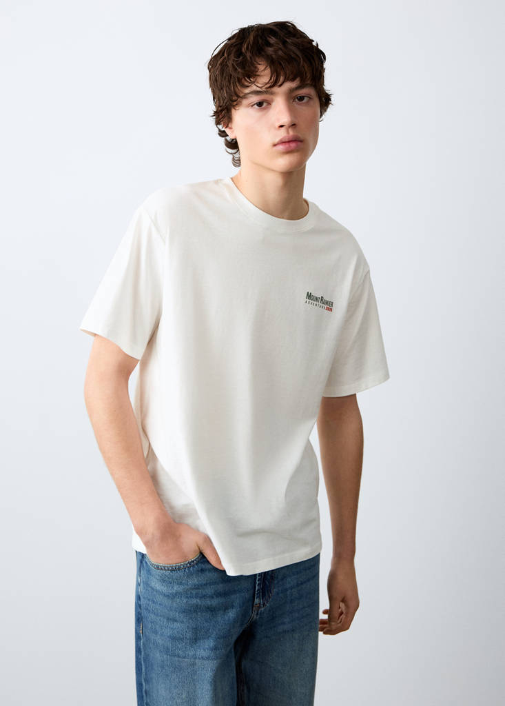 Tejido 100% algodón. Diseño recto. Diseño estampado. Estampado en la parte delantera. Diseño estampado en la parte posterior. Cuello redondo. Manga corta.