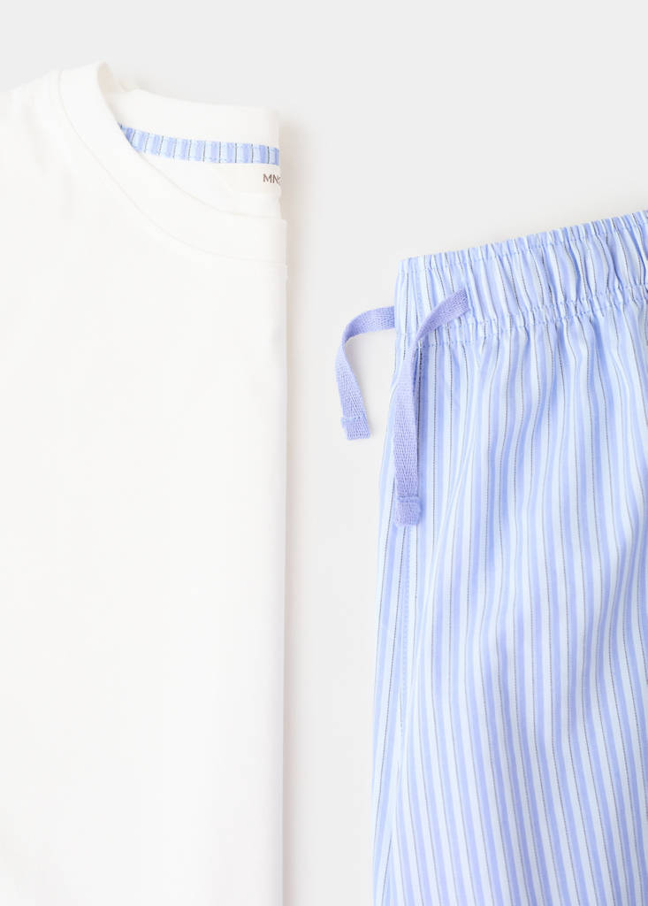 Pack de camiseta de manga corta y pantalón corto de pijama. Tejido 100% algodón. Camiseta de manga corta. Pantalón corto de rayas. Cintura elástica con cordón ajustable.
