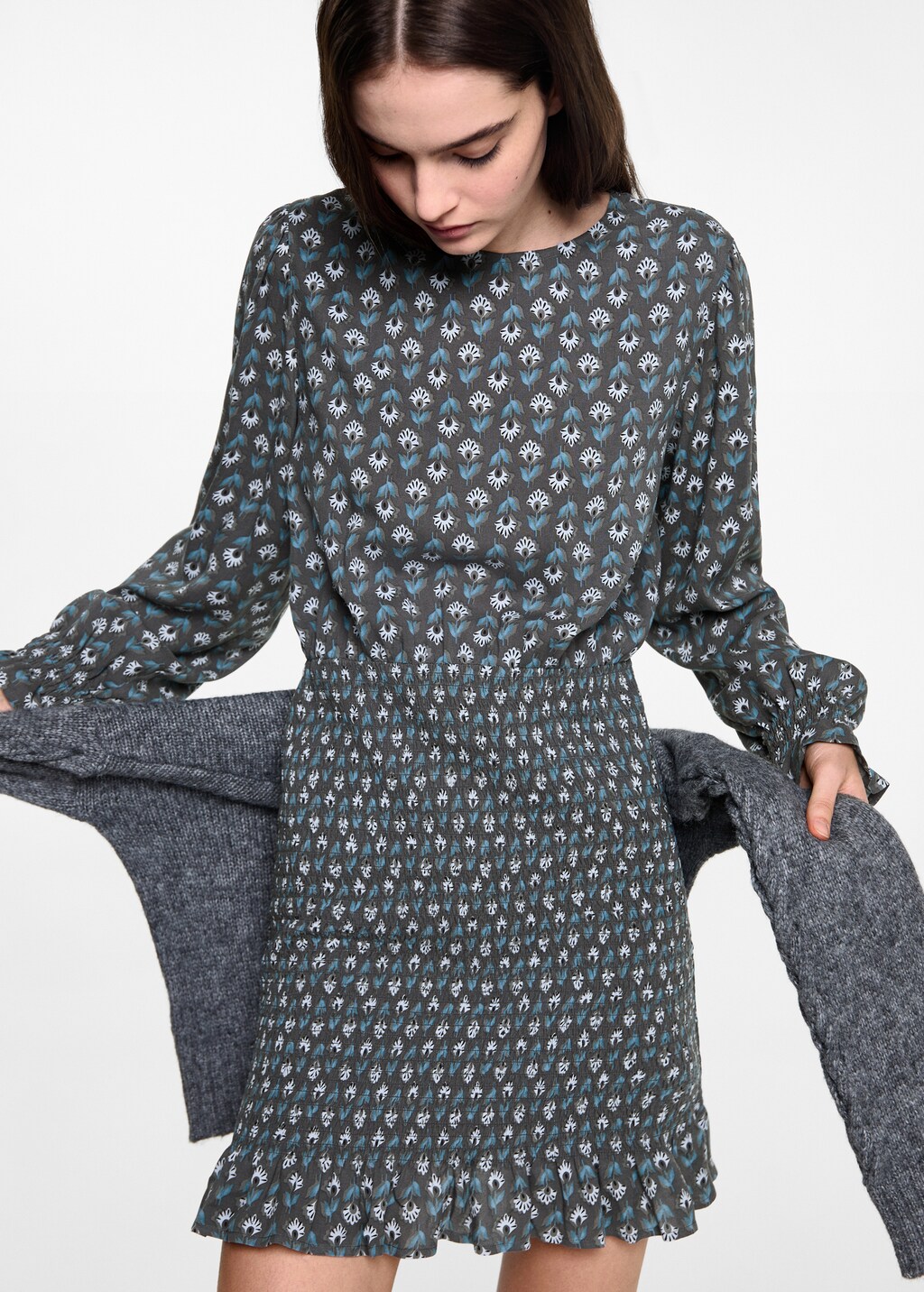 Vestido estampado detalle fruncido