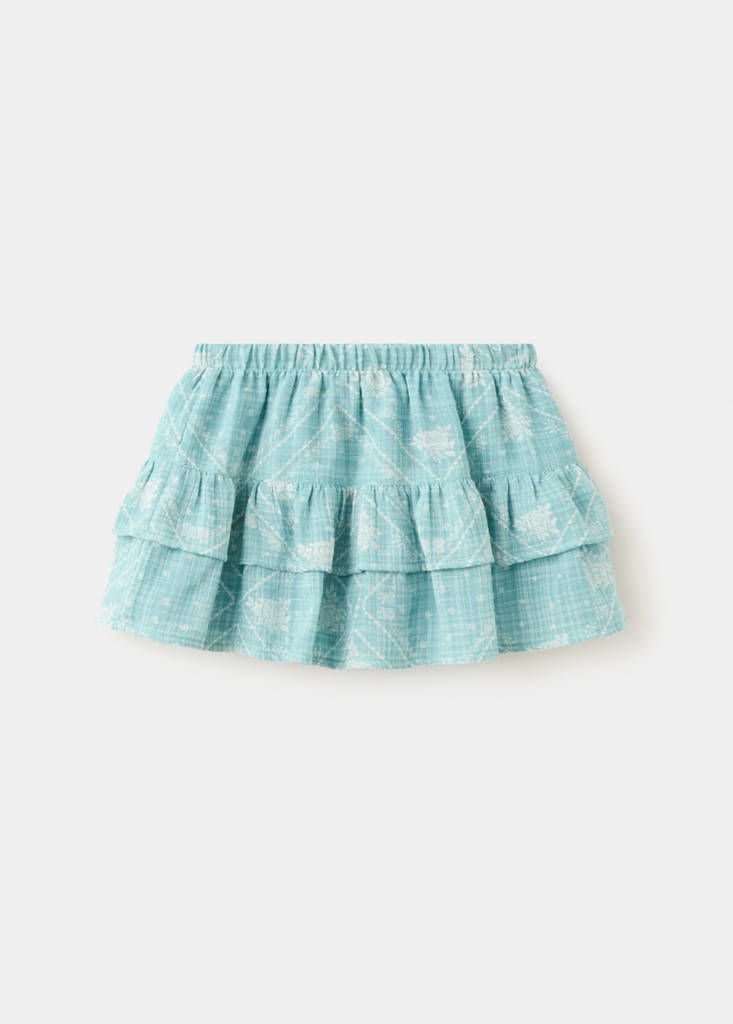 Crafted from a cotton blend fabric, this garment features a straight, short design with a striking print. The elasticated waist ensures comfort, while the frills add a distinctive touch.