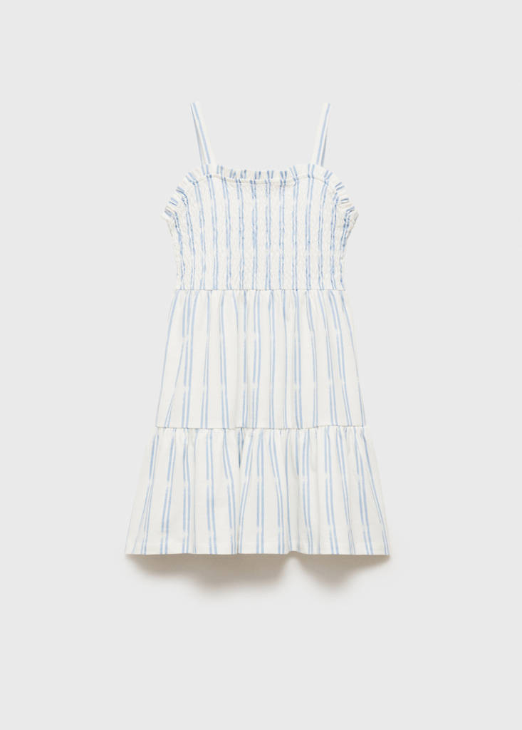100% Cotton. Short design. Striped print. Thin strap. Sweetheart neckline