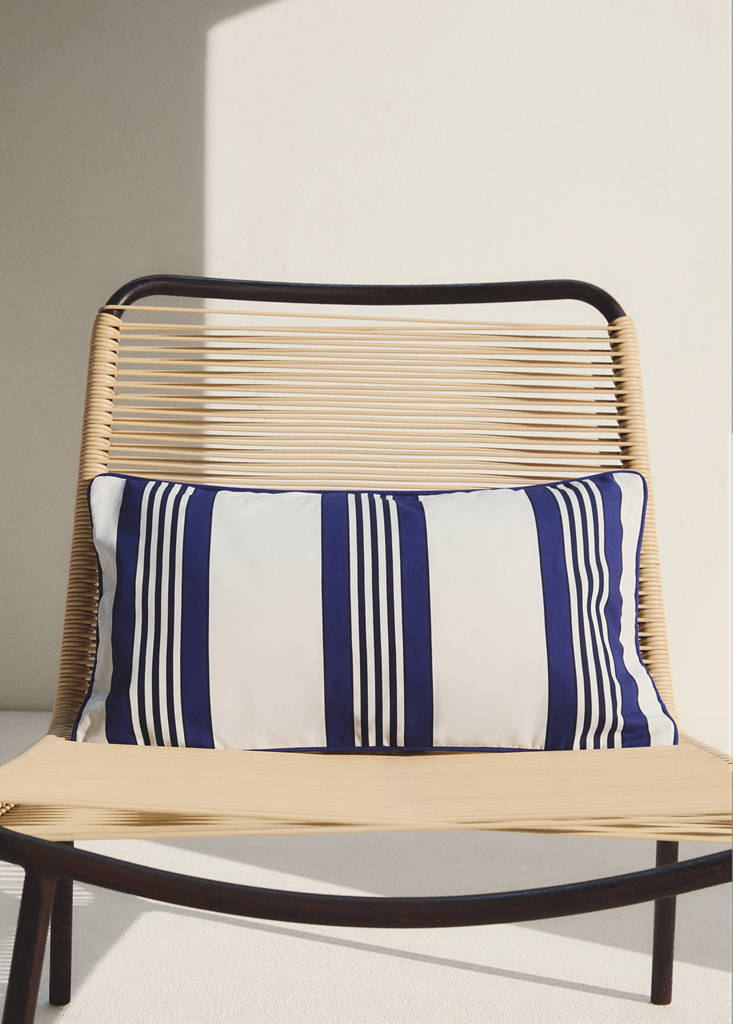 WATER REPELLENTCotton striped cushion cover 30x50 cmCurrent price [€ 12.99 ]€ 12.99Select a colourBlueSelect your size30x50cm50x50cmSizeChoose your sizeAddAdd to your wishlistSee lookFree delivery to store100% Cotton. Stripe design. Size: 30x50cm. Ideal for adding a colourful touch to any spaceDetails, composition and careStore availability
