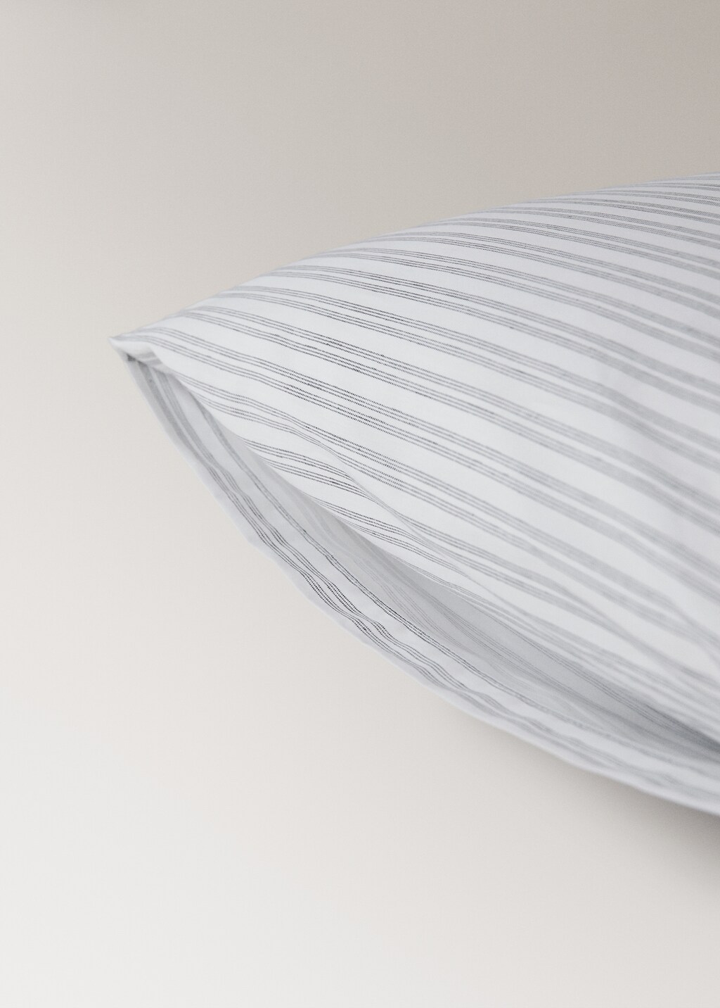 200-thread count percale cotton. Size: 50x75cm. Two pillowcases made from 200-thread count percale cotton, known for its softness, freshness and durability. Minimalist stripe design with printed thread, enhancing the quality and texture of the product. Available in more sizes. Complete with the products from the collection. Filling not included.