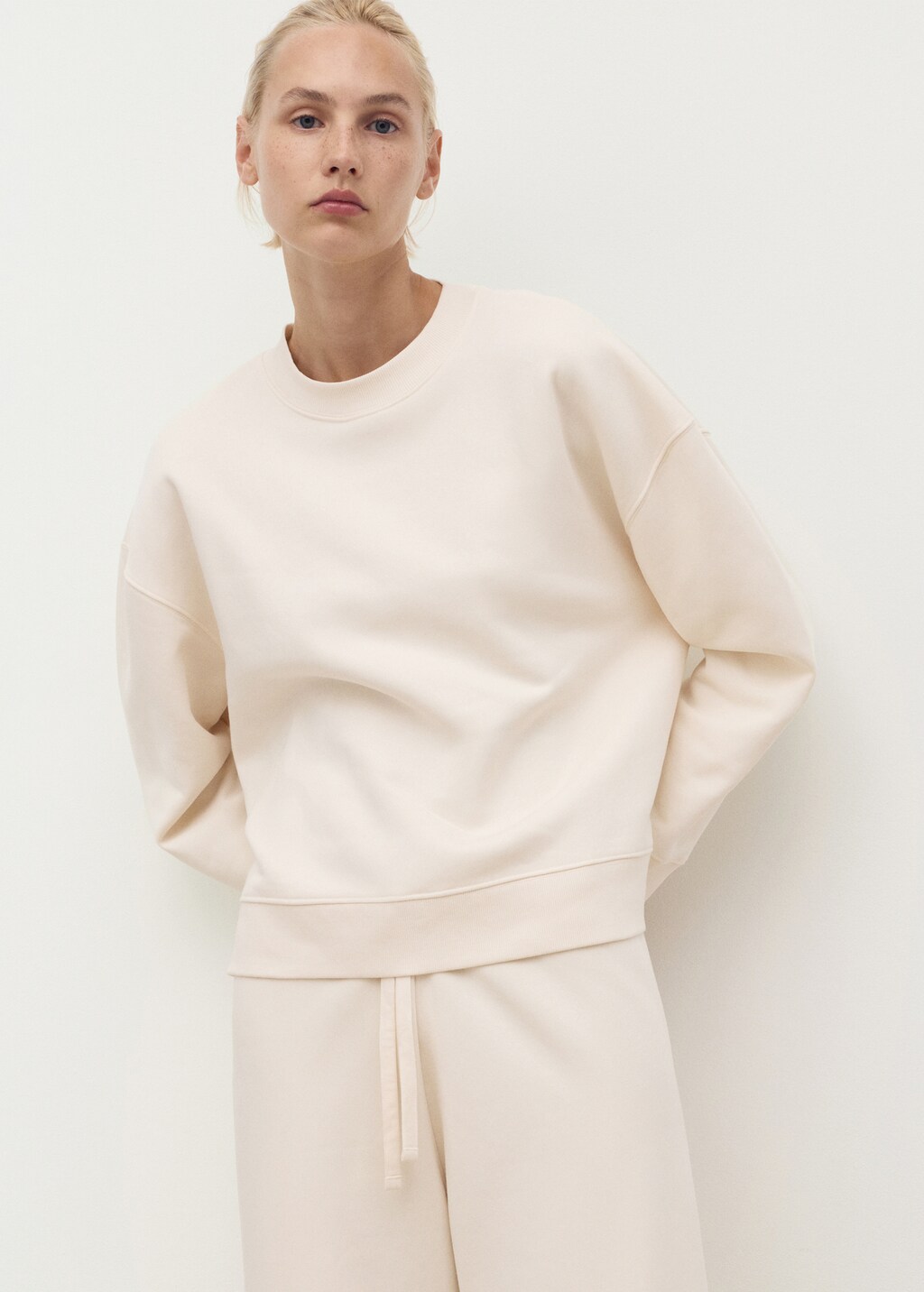 Round neck. Features ribbed details on cuffs and neck. Pleasant and soft texture. Straight design. Coordinates with more products from the collection.