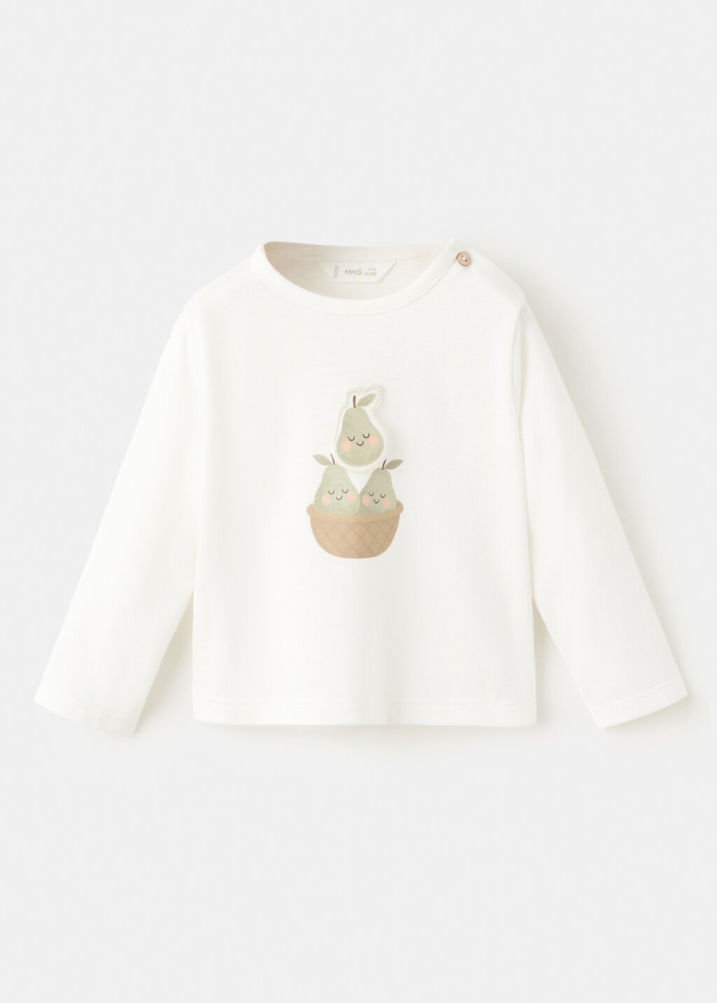نسيج 100% قطن. نسيج مستدام. رسم مطبوع على الصدر. تفاصيل مطرزة. تصميم مستقيم. ياقة دائرية. أكمام طويلة. فتح الكتف. إغلاق بزر.