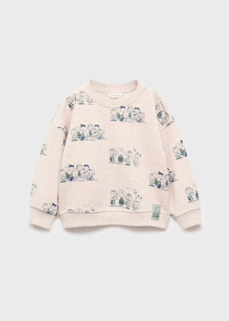 100% cotton fabric. Straight design. Snoopy design. Snoopy print. Round neck. Long sleeves. Ribbed collar, cuffs and hem. Licenses. Back to school