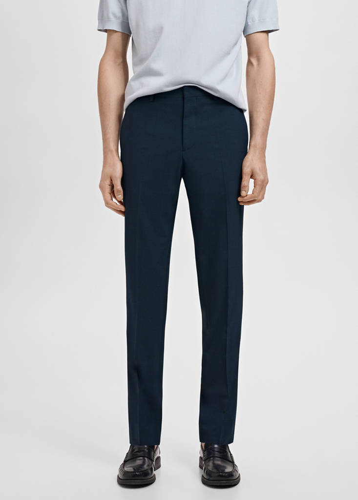 Slim fit. Tailoring collection. Belt loops. Front fastening with double-breasted buttons and zip. Side pockets. Two welt pockets with button at the back. Pressed crease detail at the front and back