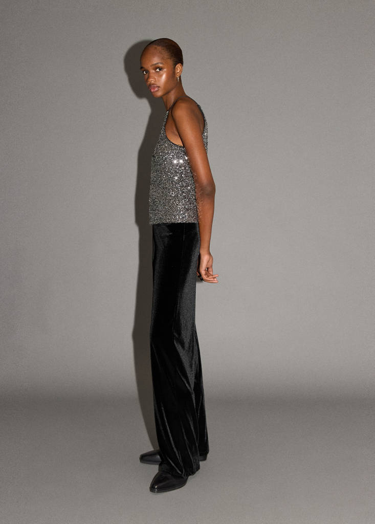 Velvet fabric. Straight design. Long design. Elasticated waist. Party and events collection. Party Collection. Christmas Collection. Glossy design