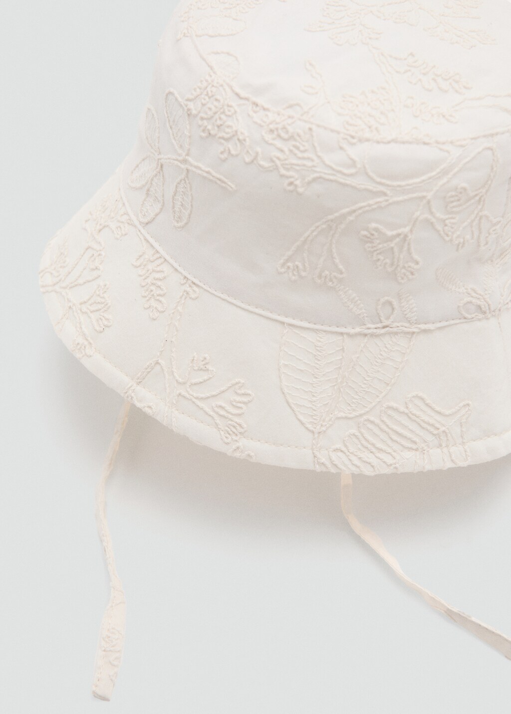 Teixit 100% cotó. Disseny bucket. Detalls florals brodats. Tancament de llaç.