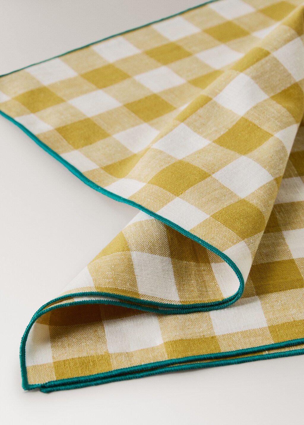Teixit barreja de cotó i lli. Mida: 45x45 cm. Pack de 2. Disseny de quadres vichy. Estampat quadre bicolor amb overlock de contrast. Combina amb més productes de la col·lecció.