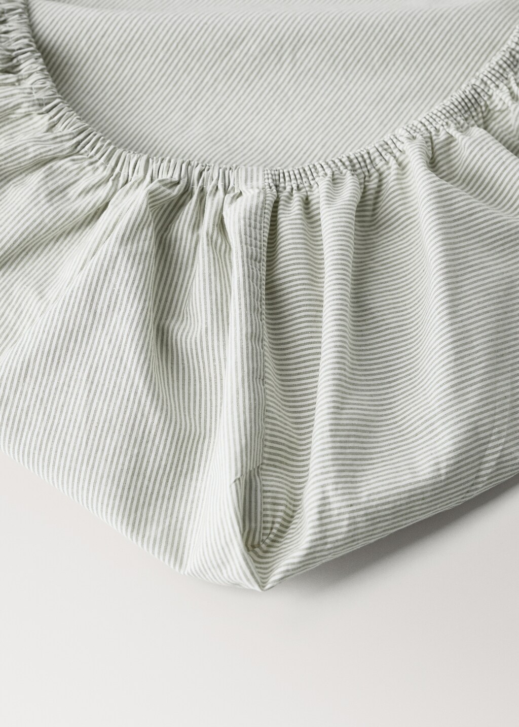 Mida: 60x120x15cm. 100% cotó. Fils tintats amb disseny de ratlles. El llençol de sota per a bressol està confeccionat amb cotó d'alta qualitat, que ofereix una textura suau i transpirable, ideal per a la pell sensible dels nadons. Disponible en dos colors. Completa amb més productes de la col·lecció