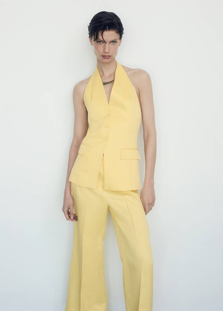 Teixit barreja de cotó i lli. Tir mitjà. Disseny llarg. Disseny campana. Estil acampanat. Tanca cremallera invisible al lateral. Detall prisat. Folre interior. Total look. Col·lecció festa, cerimònia i comunió