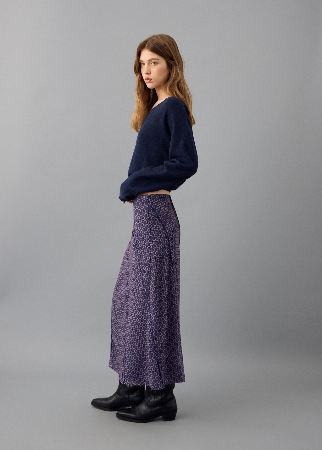 Teixit fluid. Disseny llarg. Disseny estampat. Estampat floral. Detall costures. Tanca lateral de cremallera. Amb folre interior. Total look.