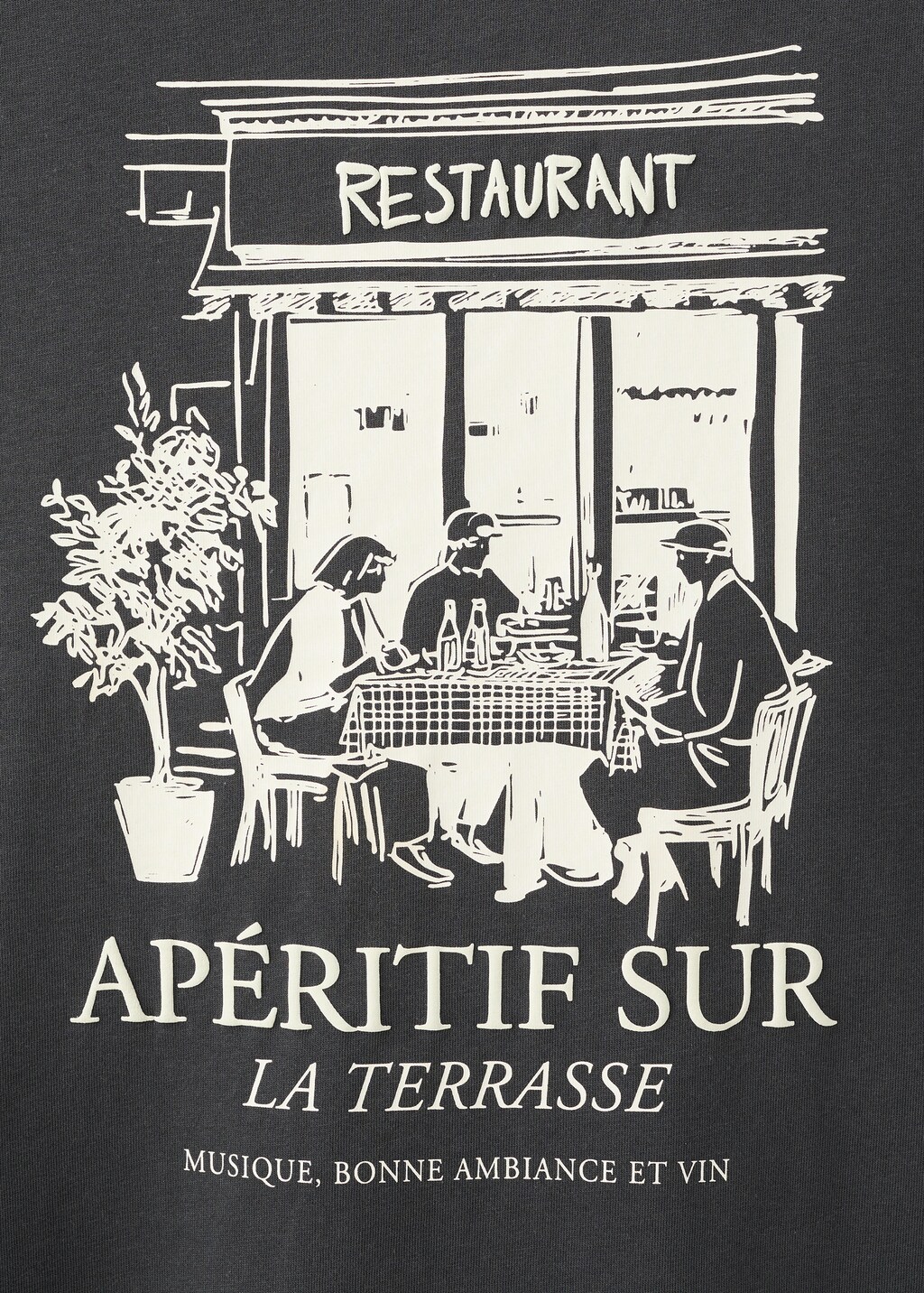 Teixit 100% cotó. Disseny estampat. Estampat a la part davantera. Dibuix estampat a la part posterior. Coll rodó. Màniga curta.