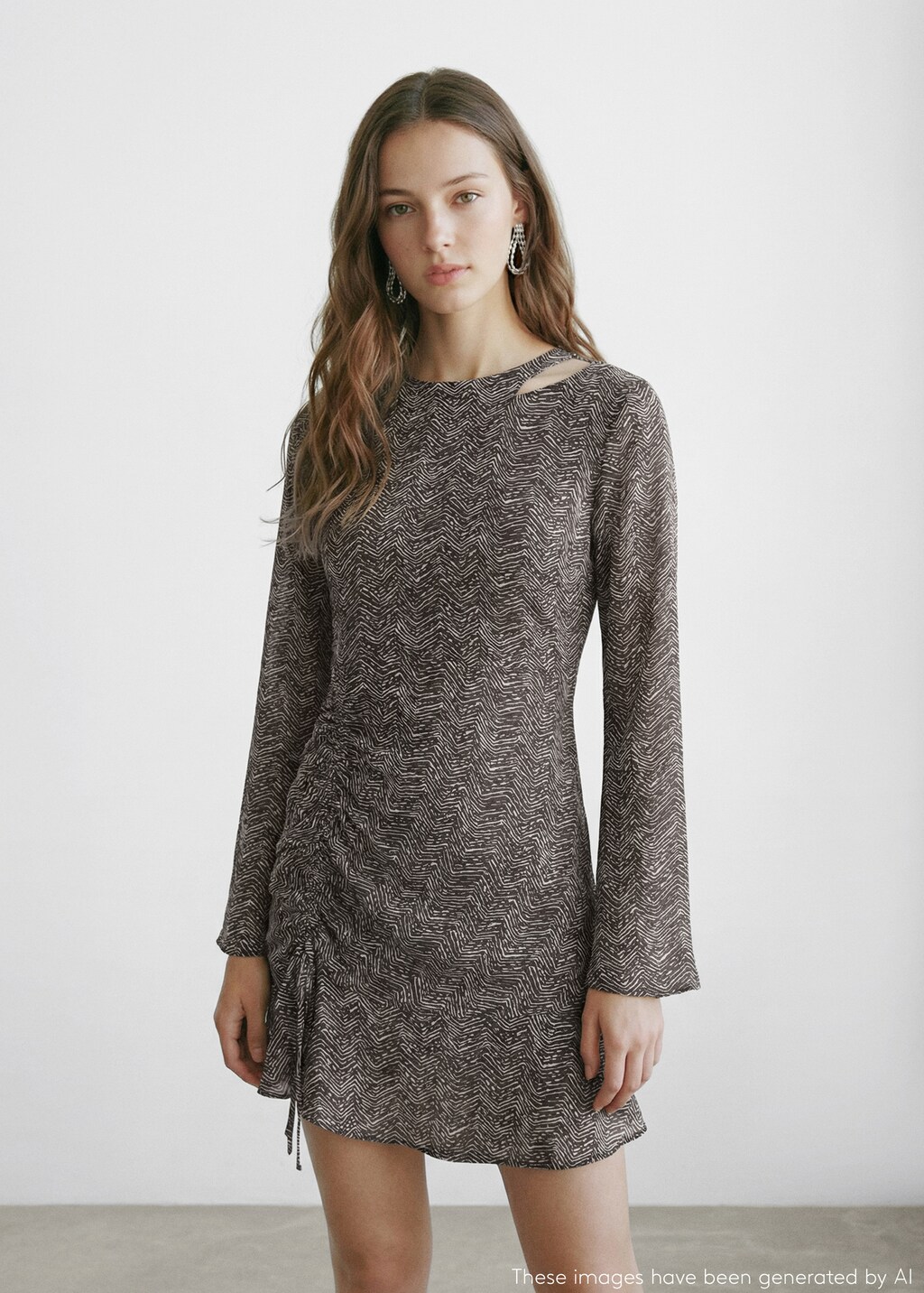 Teixit fluid. Disseny recte. Disseny curt. Disseny estampat. Coll rodó. Màniga llarga. Detall de volants.
