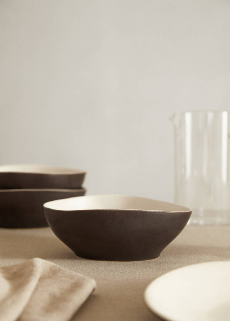 Tamaño: 18,5x16x7cm. 100% gres. Acabado mate y brillo combinado. Diseño orgánico. Diseño bicolor. Diseño irregular. Utensilios de cocina. Recipiente para comida. Completa tu vajilla con más productos de la colección. Hecho en Portugal