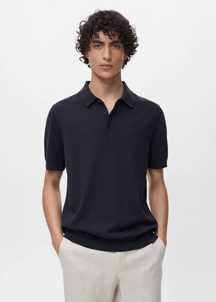 ESSENTIALS: Made to last. Tejido 100% algodón. Silueta recta. Tejido de punto fino. Cuello polo con cierre de botones. Manga corta con puños elásticos. Cuello, mangas y bajo acabados en canalé