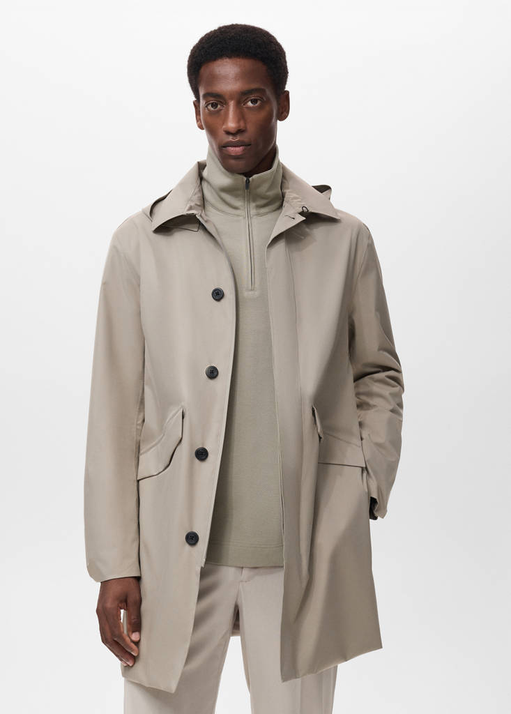 Silueta recta. THERMOLITE®: tejido que gracias a la tecnología de su fibra ofrece aislamiento térmico y transpirabilidad. Waterproof: Este acabado duradero impide que el agua atraviese el tejido, proporcionando la mejor protección posible contra la lluvia. Windproof: Tejido cortavientos. Comfort: Esta prenda le ofrece total libertad de movimientos y recupera su forma original. Cuello camisero. Cierre delantero de cremallera y botones a contraste. Opción capucha desmontable. Dos bolsillos de solapa en la parte frontal. Dos bolsillos laterales. Manga larga con puños abotonados