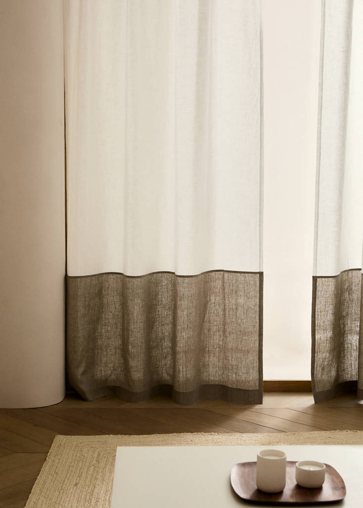 100% Lino. Tamaño: 140x270cm. Opacidad media. Hecho en Europa. Tejido reversible. Cuerpo dividido en dos partes: una en lino blanco y otra en lino natural. Puedes escoger gracias a la trabilla que está en ambos lados qué color pones en la parte superior y qué color en la inferior. Terminación dobladillo. Se vende por unidad. Cortina pasa barras